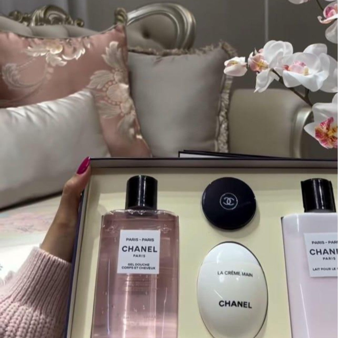 بوكس Chanel Paris–Paris هو هدية ما تنسى… توليفة فاخرة تجمع نعومة الورد، وجاذبية اللمسات الفرنسية، وروح الأنوثة الراقية اللي ميّزت شانيل عبر السنين.